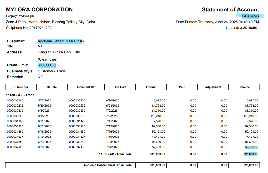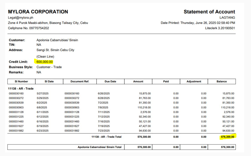 Maybe gi adjust ni ang creditlimit then gi change balik to 600,000.00.