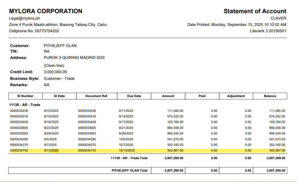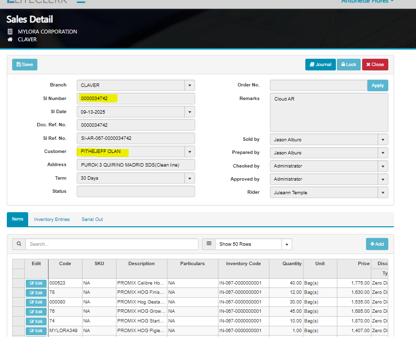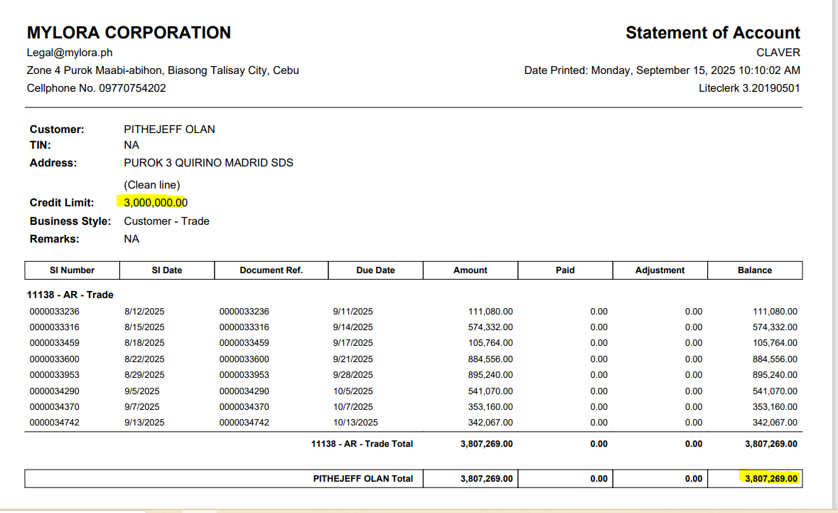 Note: ang nahitabo man gud ani sir rhi is Over CL ni siya nga customer then imbis e close nako ang sales ang lock na nuon akong na click and then na locked rapud siya bisag over na kaayo iyang cl then wala pud ko nag pa add pag cl ani kay for confirmation paman ta ni sya then nasayop man kog click imbis close na click man nako ang locked, then mao na sya ang naka highlight nga na locked nako sir. please ko ani sir rhi salamat.