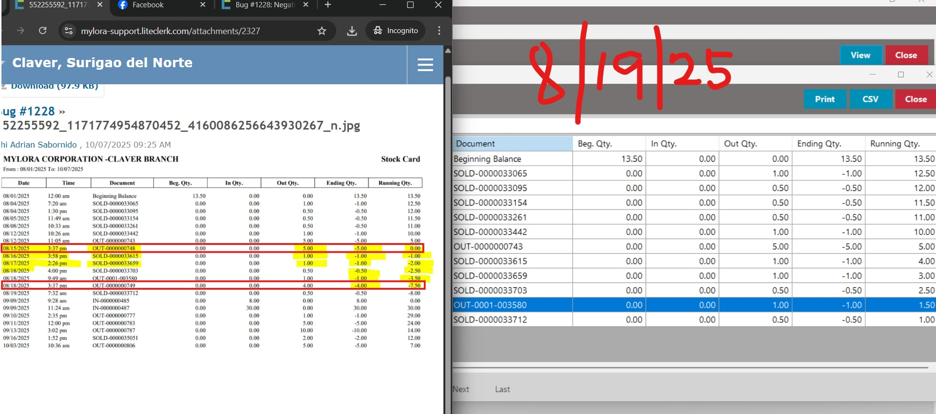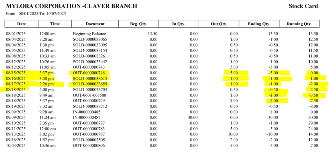 Resolved. Found out that there was two SI-AR Stock out recorded after the transaction dates. Based on the screenshot, (left side) the two highlighted stock out transactions were visible on the latest data of the pos. While on the right side was the pos data as of 8/19/2025, where the two stockout not made or generated yet from the cloud AR transaction.