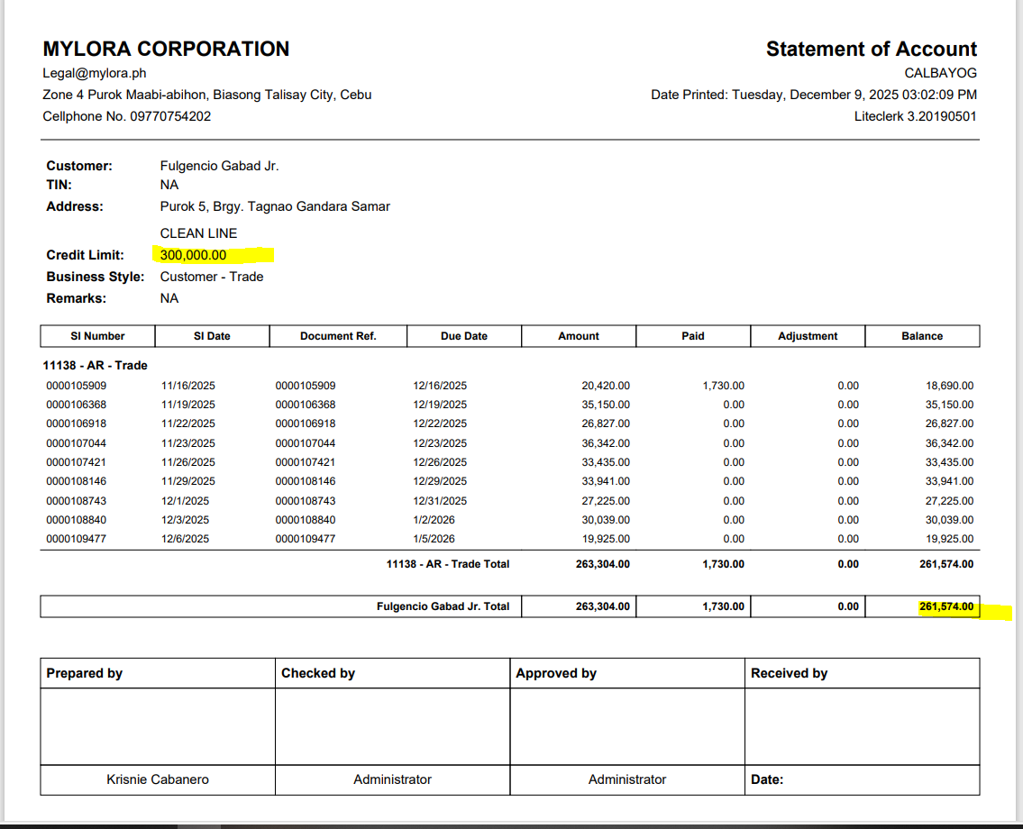 exceed credit limit customer but in record (CLOUD) not yet na exceed