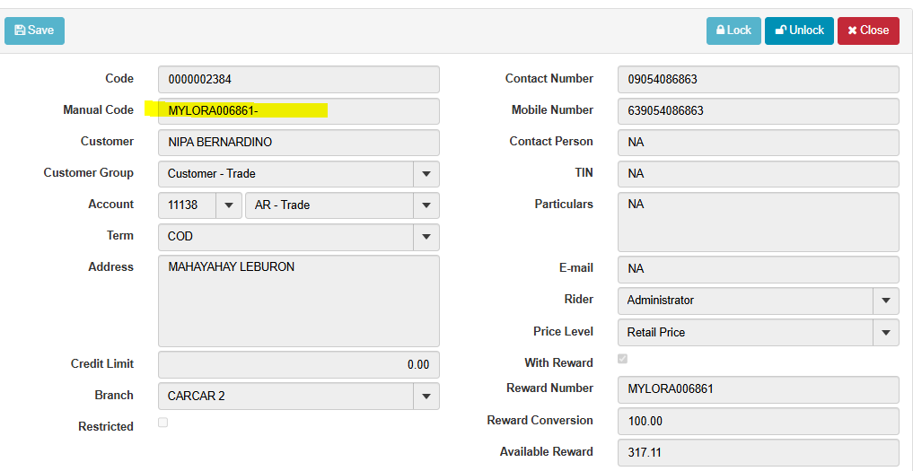 Costumer detial in cloud naa "-" dili ka unlock Request edit