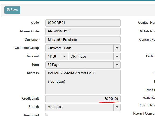 openexceed credit limit customer but in record not yet na exceed
