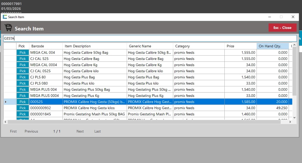ITEM DESCRIPTION: PROMIX CALIBRE HOG GESTA (50KGS) BAG