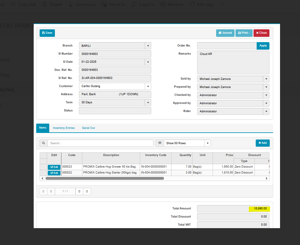 Customer : Carlito Gutang
