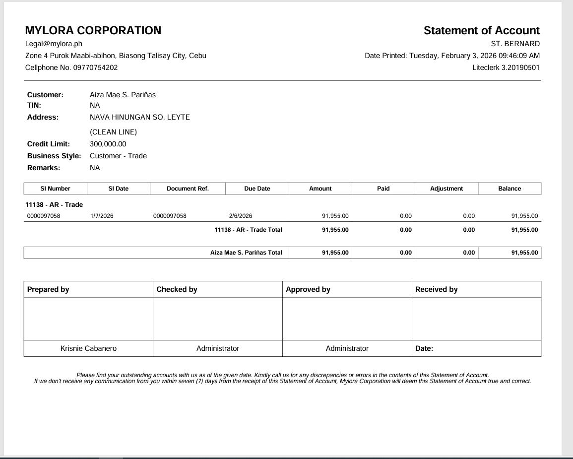 CUSTOMER: AIZA MAE S. PARIÑAS