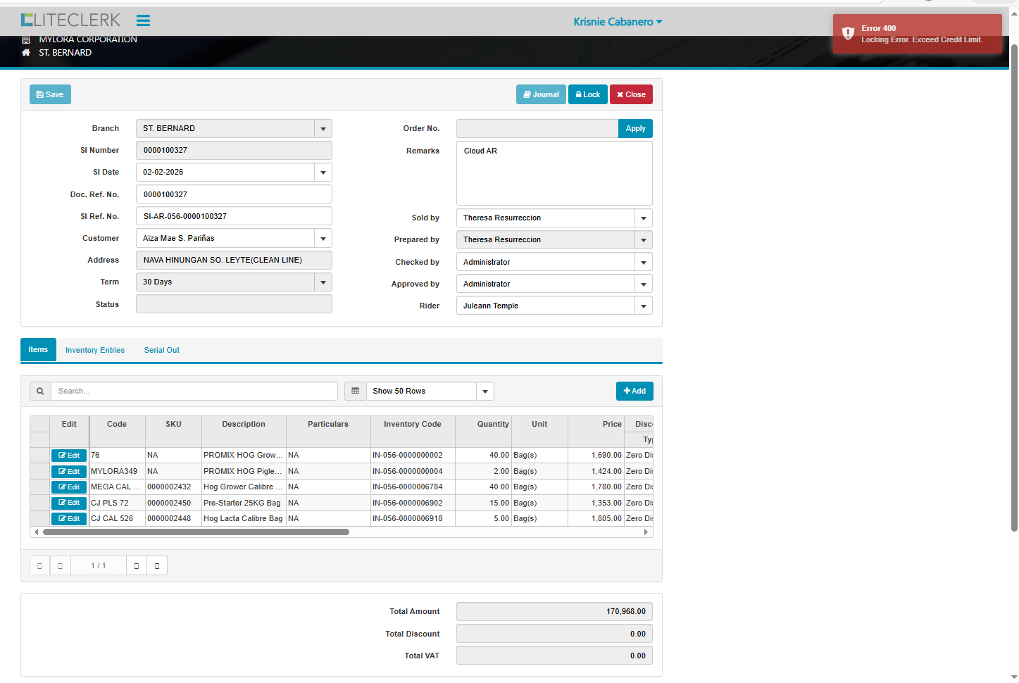 openexceed credit limit customer but in record not yet na exceed