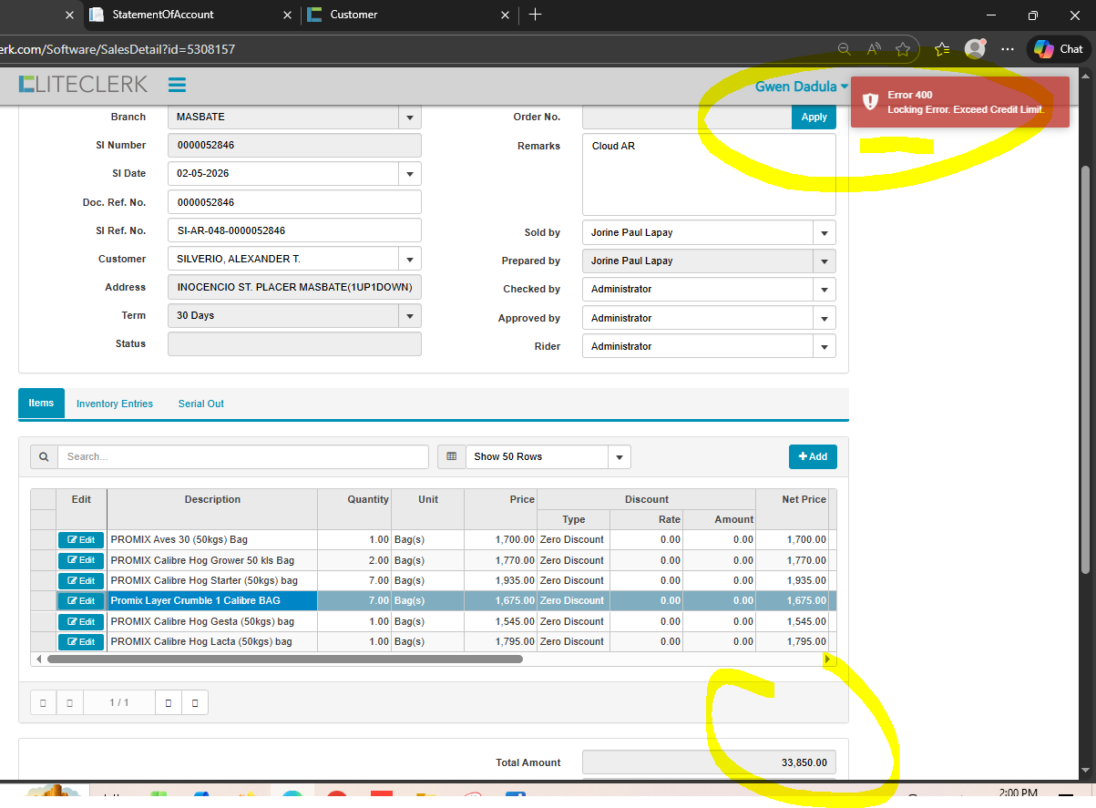 openexceed credit limit customer but in record not yet na exceed (CLOUD)