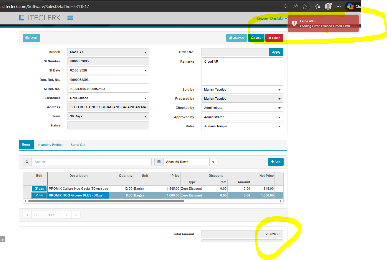 openexceed credit limit customer but in record not yet na exceed (CLOUD)