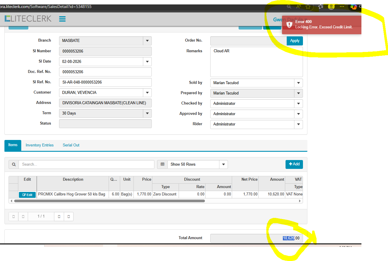 openexceed credit limit customer but in record not yet na exceed in (CLOUD)