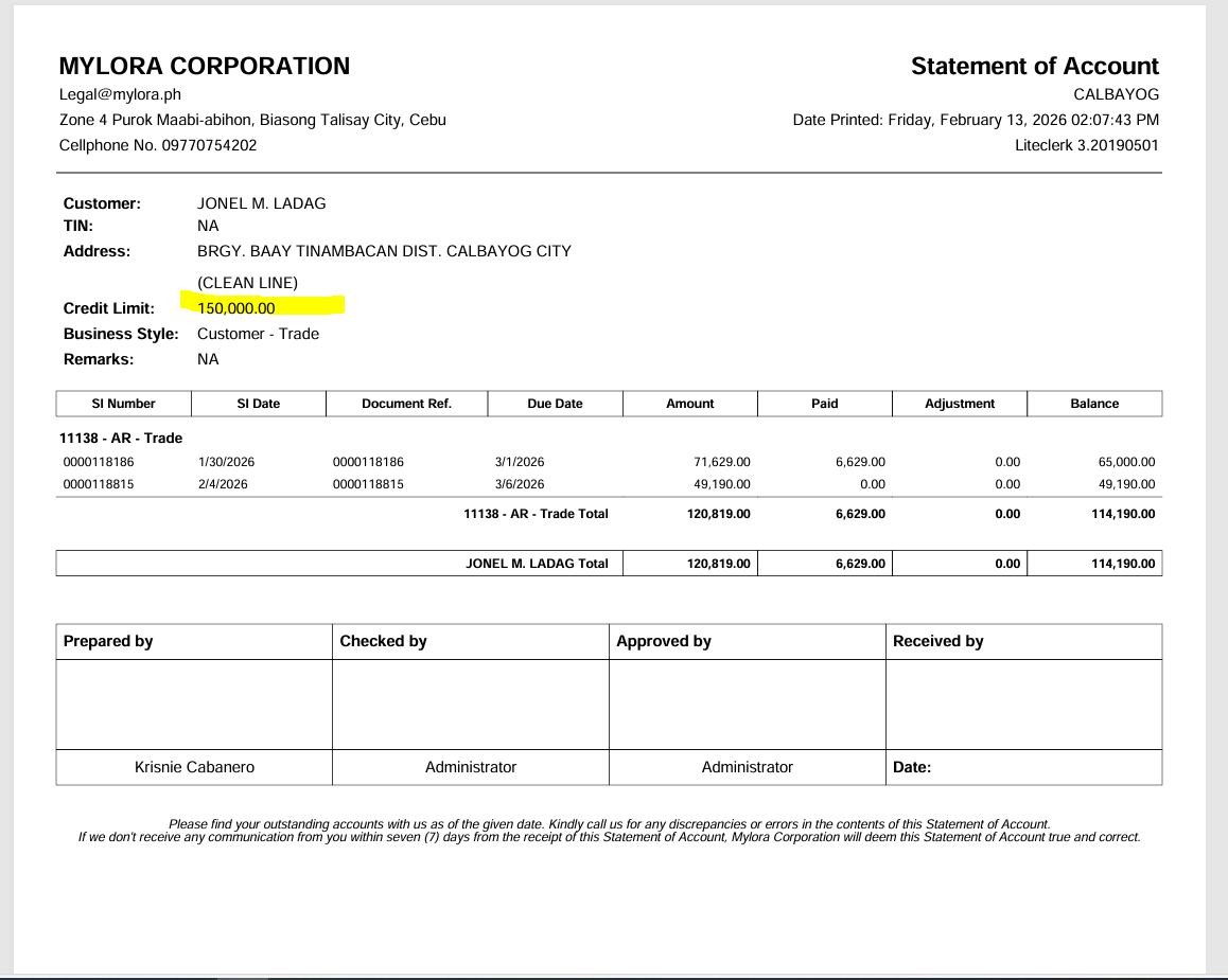 CUSTOMER: JONEL M. LADAG
