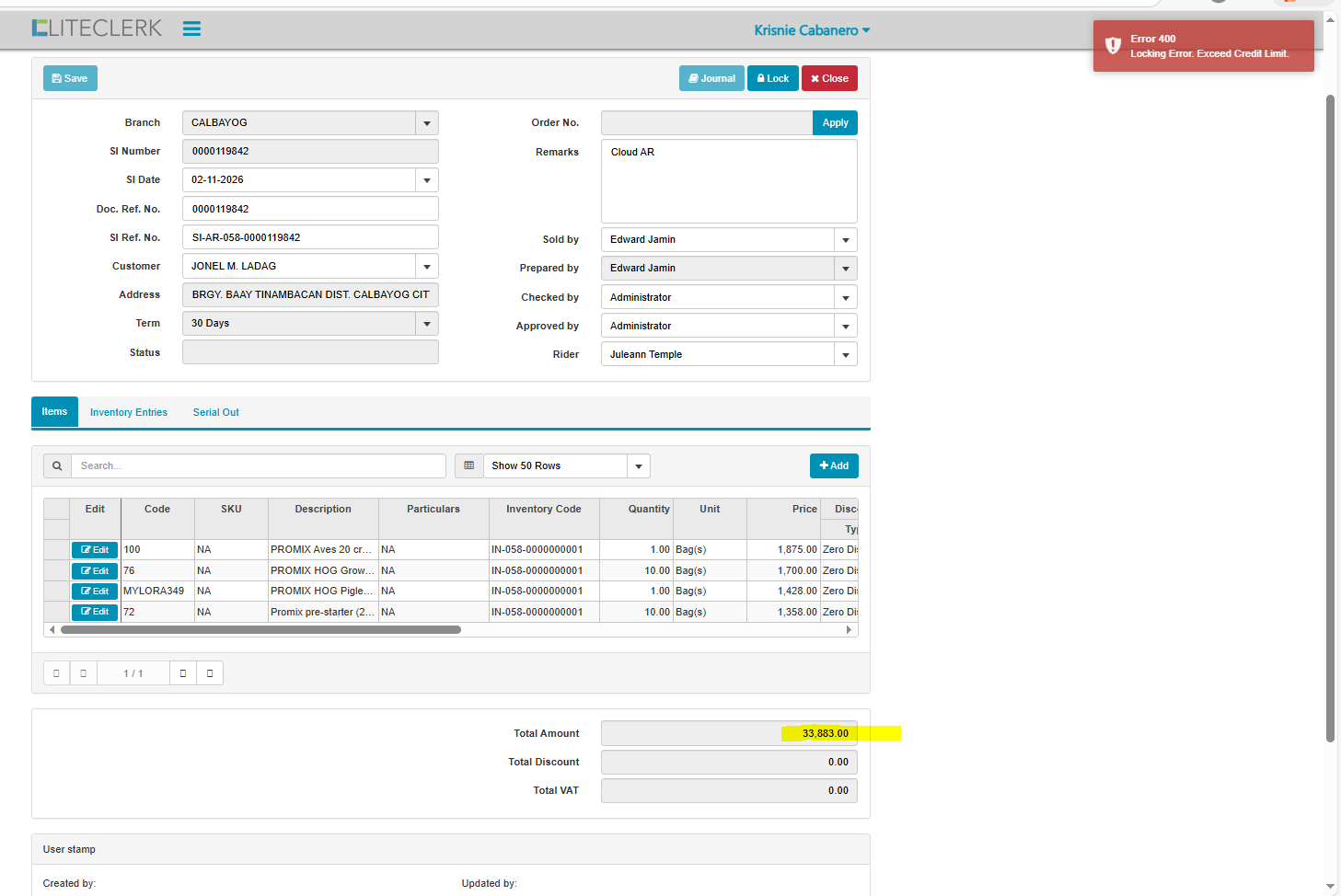 openexceed credit limit customer but in record not yet na exceed (CLOUD)
