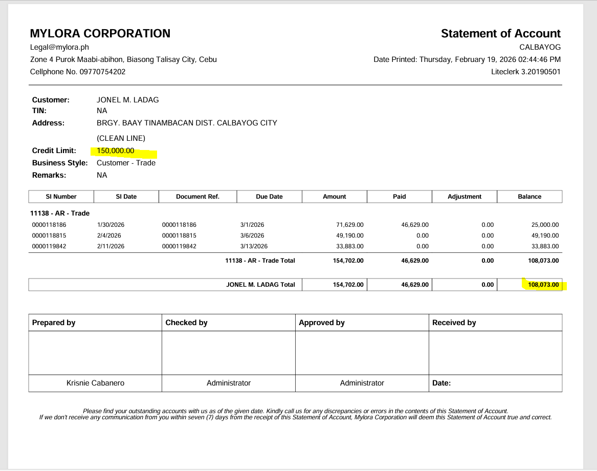 CUSTOMER: JONEL M. LADAG