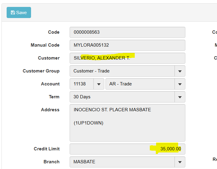 exceed credit limit customer but in record not yet na exceed