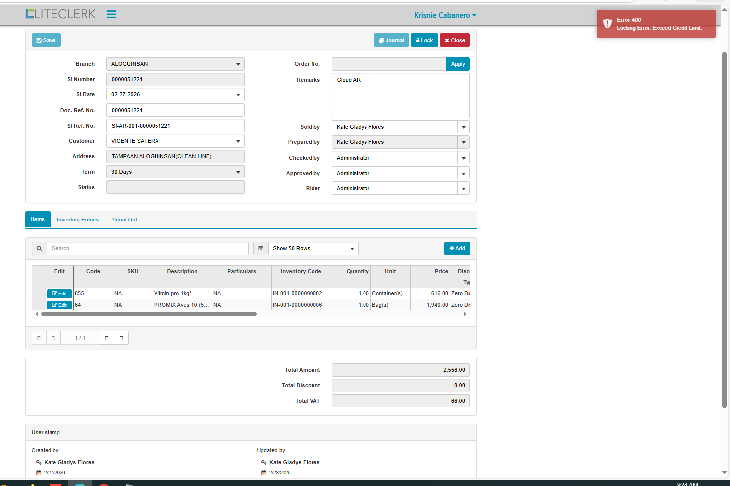 openexceed credit limit customer but in record not yet na exceed (CLOUD)