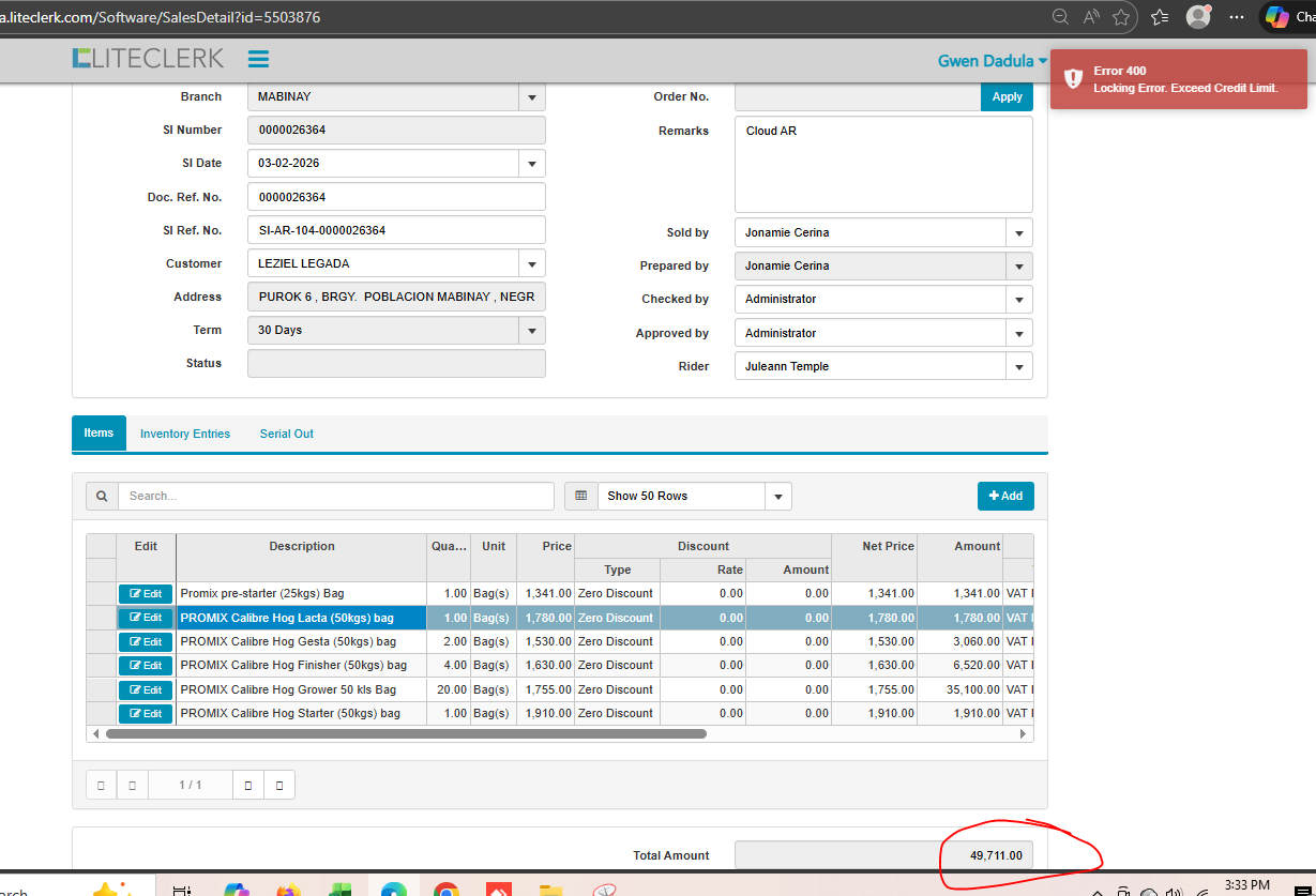 exceed credit limit customer but in record not yet na exceed (CLOUD)
