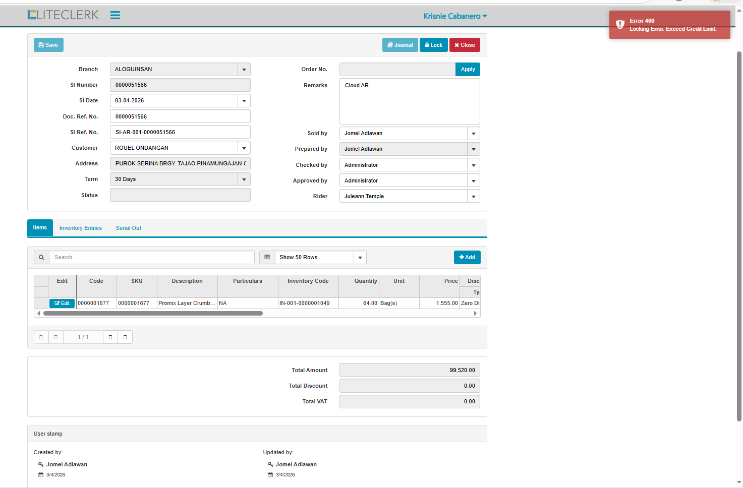 exceed credit limit customer but in record not yet na exceed (CLOUD)