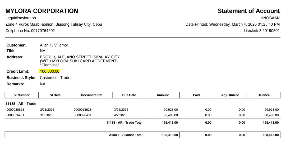 exceed credit limit customer but in record not yet na exceed (CLOUD)