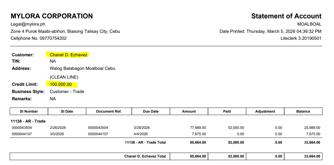 Details: Pa assist ko ani palihug sir dili ra lapas sa iyang CL pero ni exceed thank you