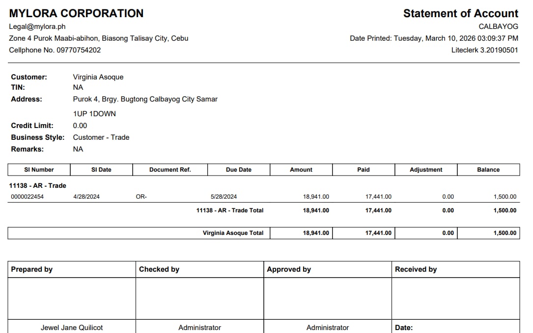 Customer name: Virginia Asoque