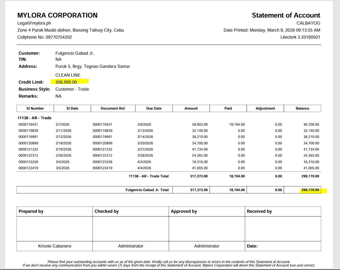 openexceed credit limit customer but in record not yet na exceed (CLOUD)