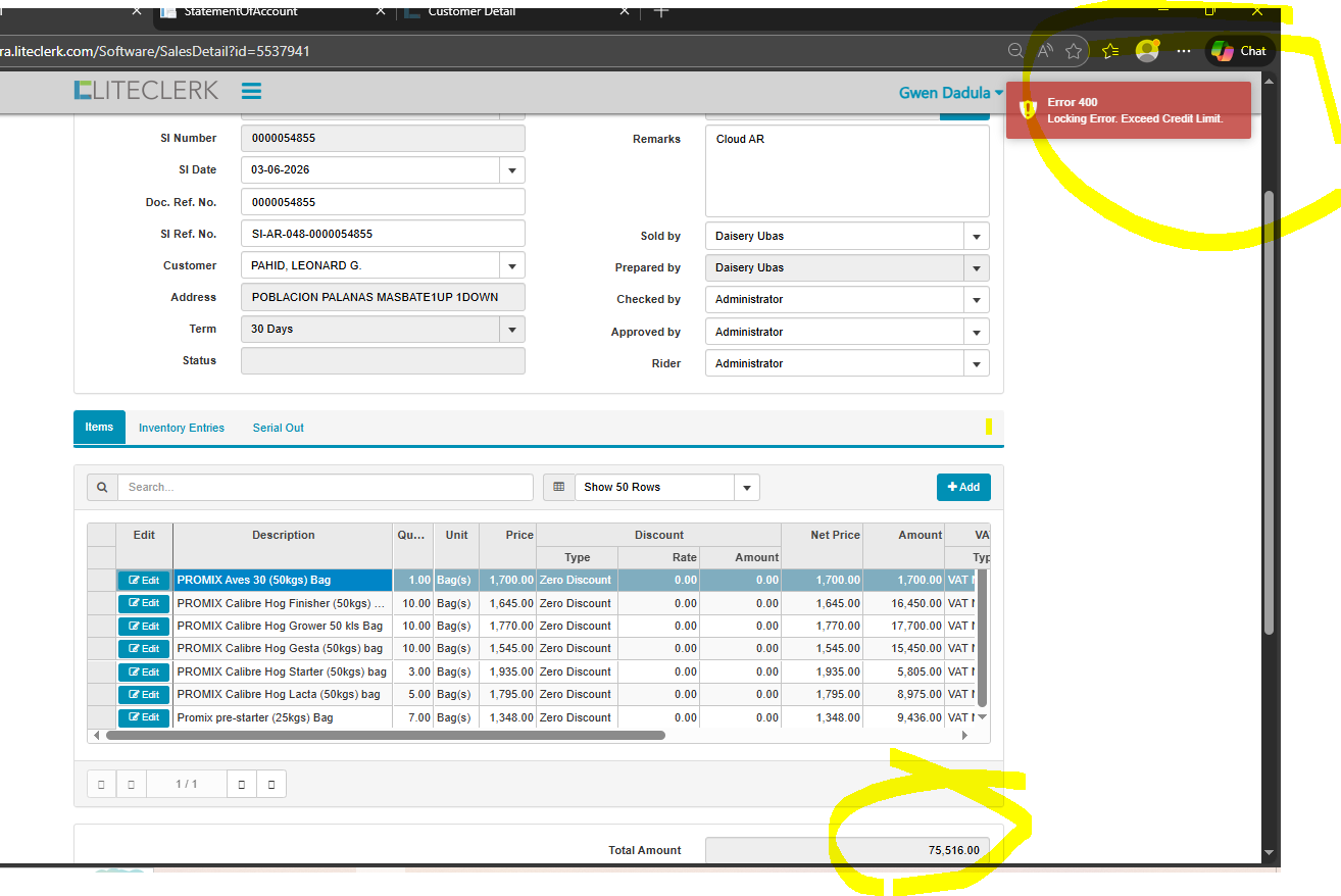 openexceed credit limit customer but in record not yet na exceed (CLOUD)