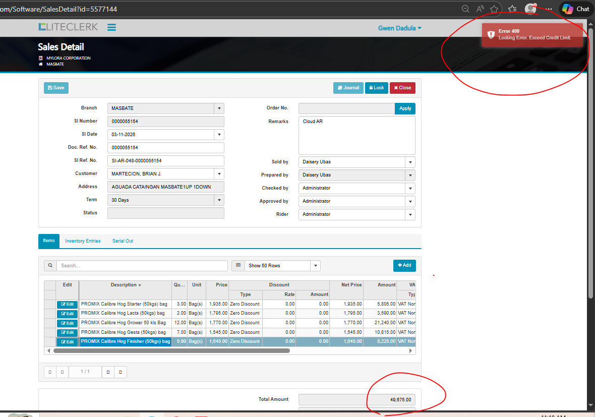 openexceed credit limit customer but in record not yet na exceed (CLOUD)