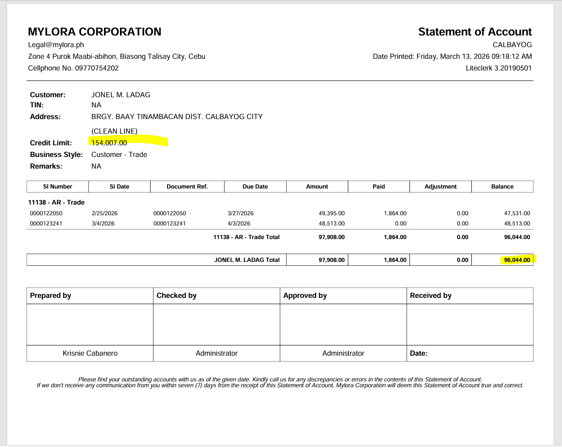 CUSTOMER: JONEL M. LADAG