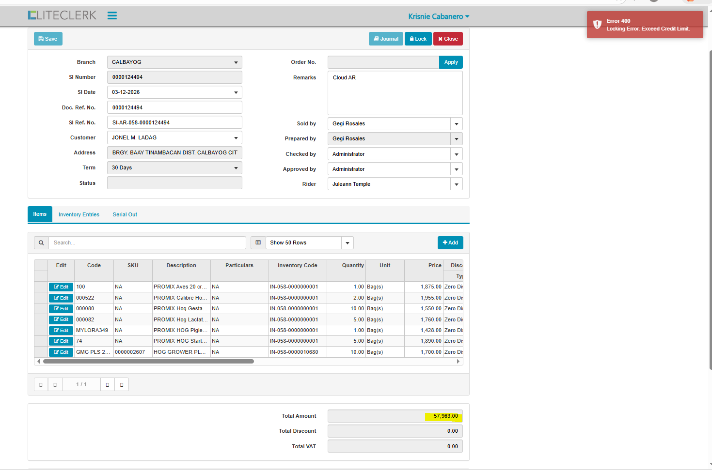 openexceed credit limit customer but in record not yet na exceed (CLOUD)