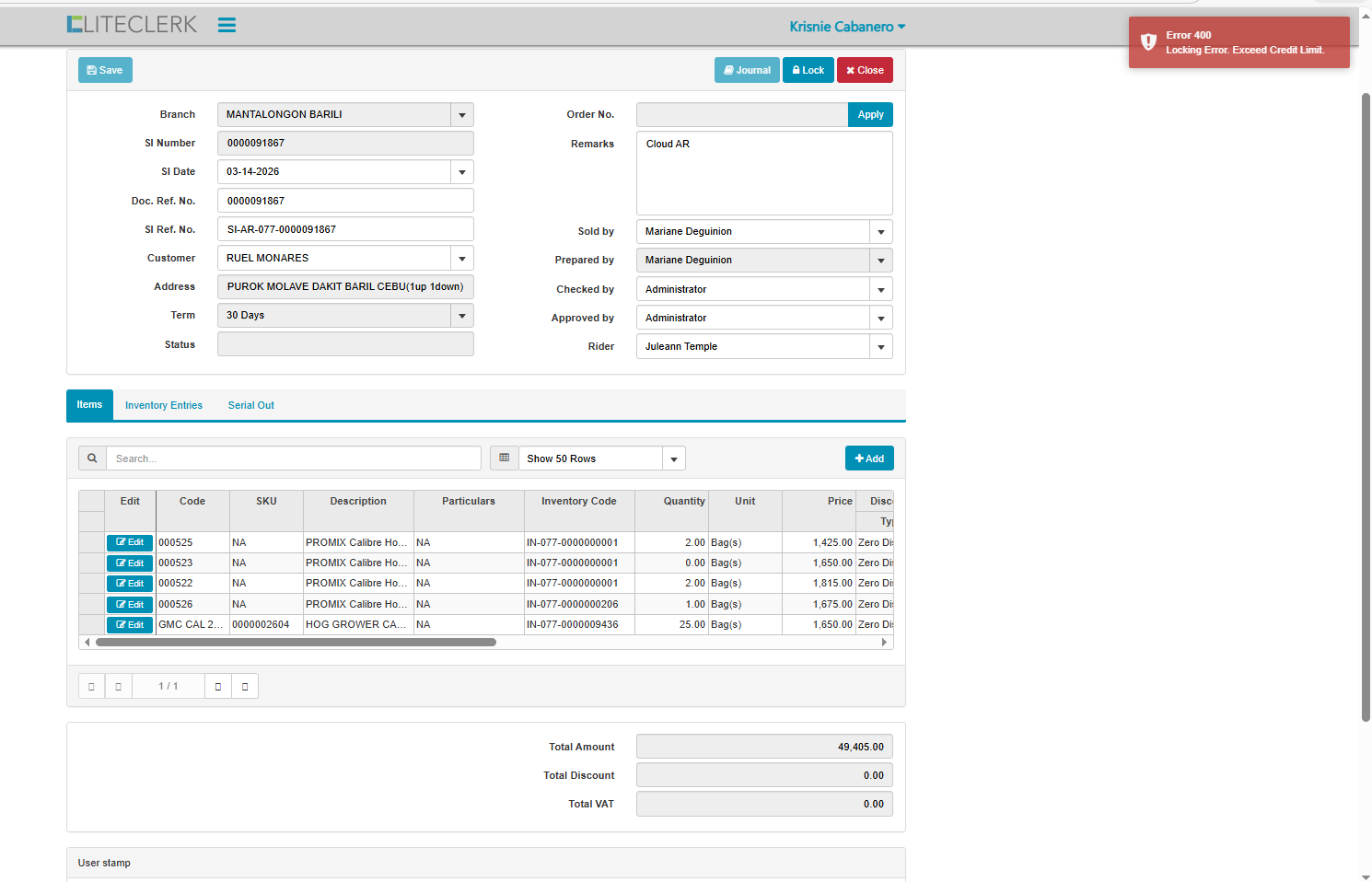 openexceed credit limit customer but in record not yet na exceed (CLOUD)