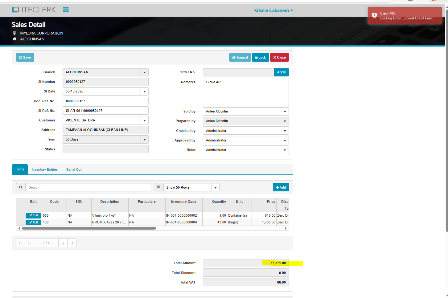 openexceed credit limit customer but in record not yet na exceed (CLOUD)