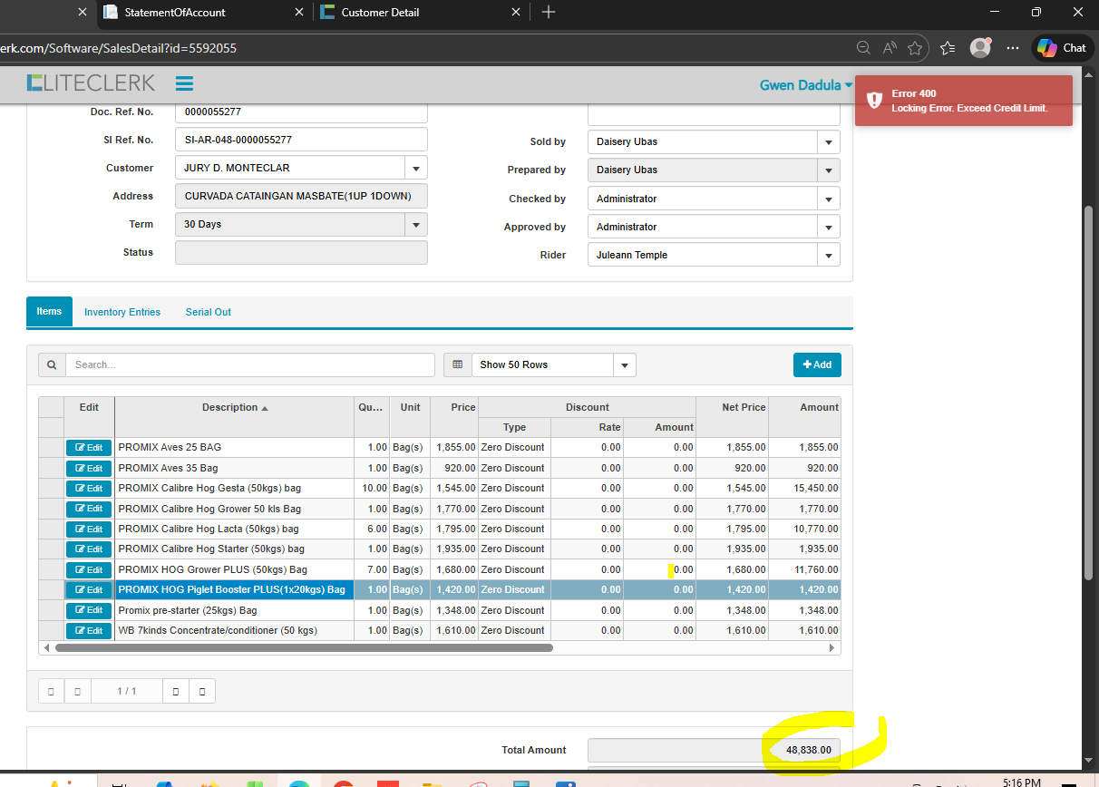 openexceed credit limit customer but in record not yet na exceed (CLOUD)