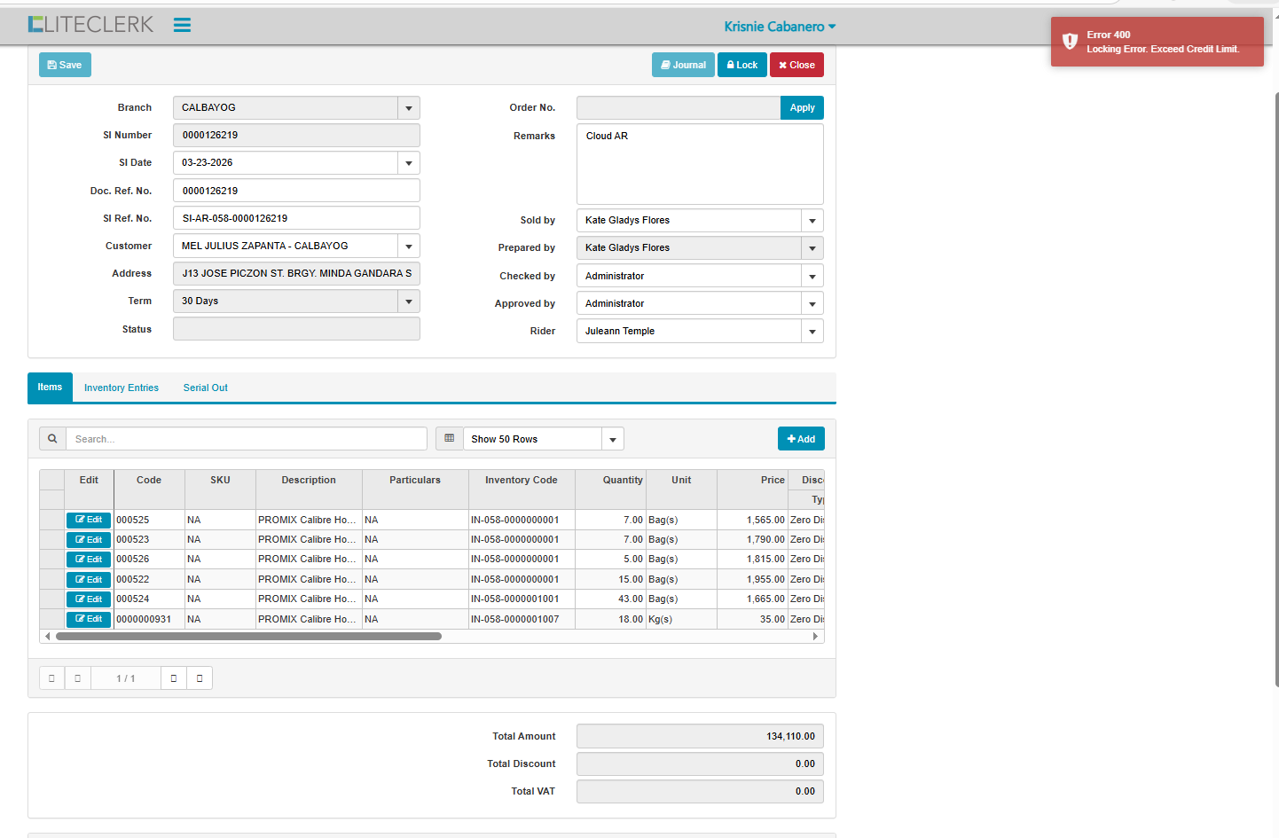 exceed credit limit customer but in record not yet na exceed (CLOUD)