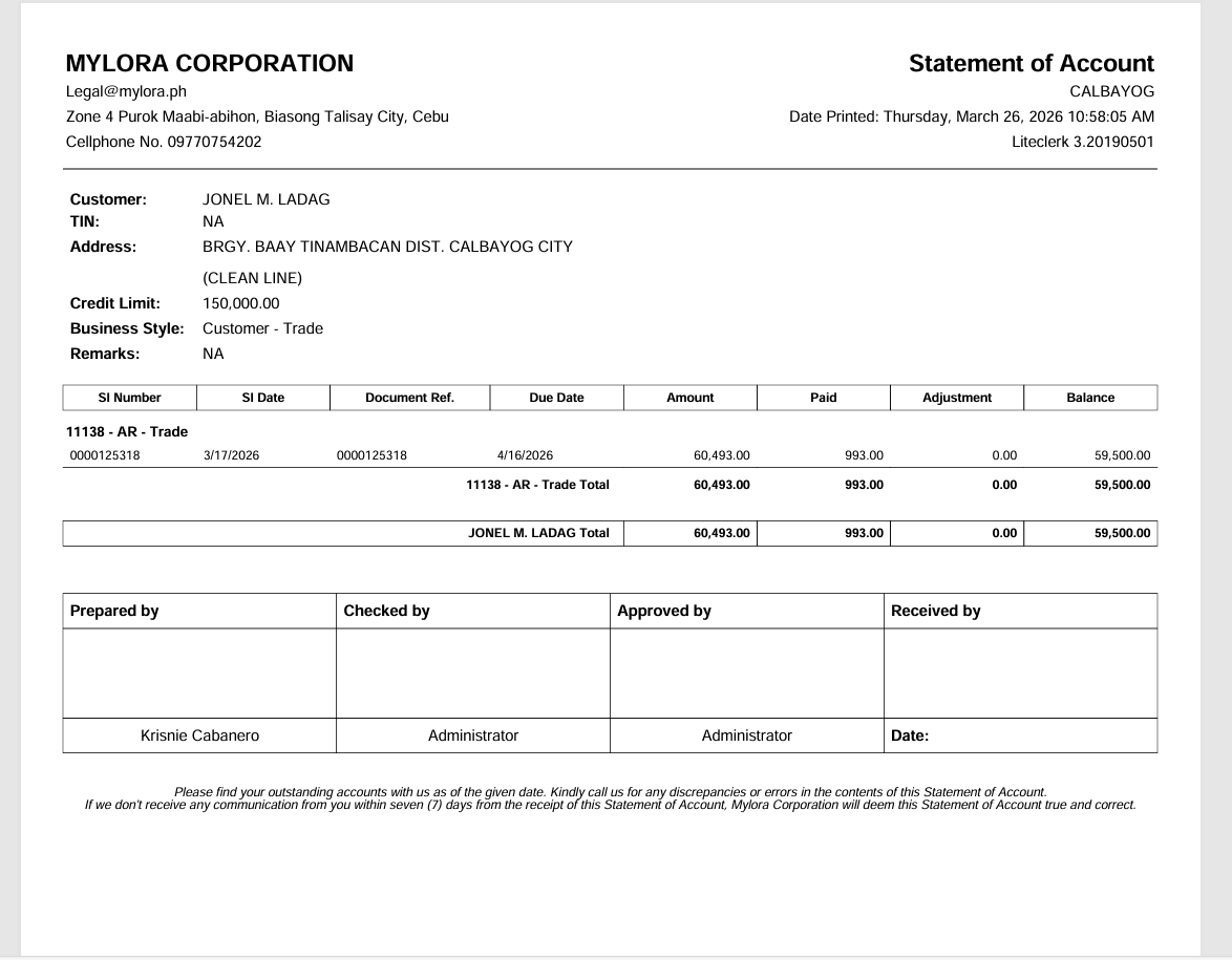Customer: Jonel M. Ladag