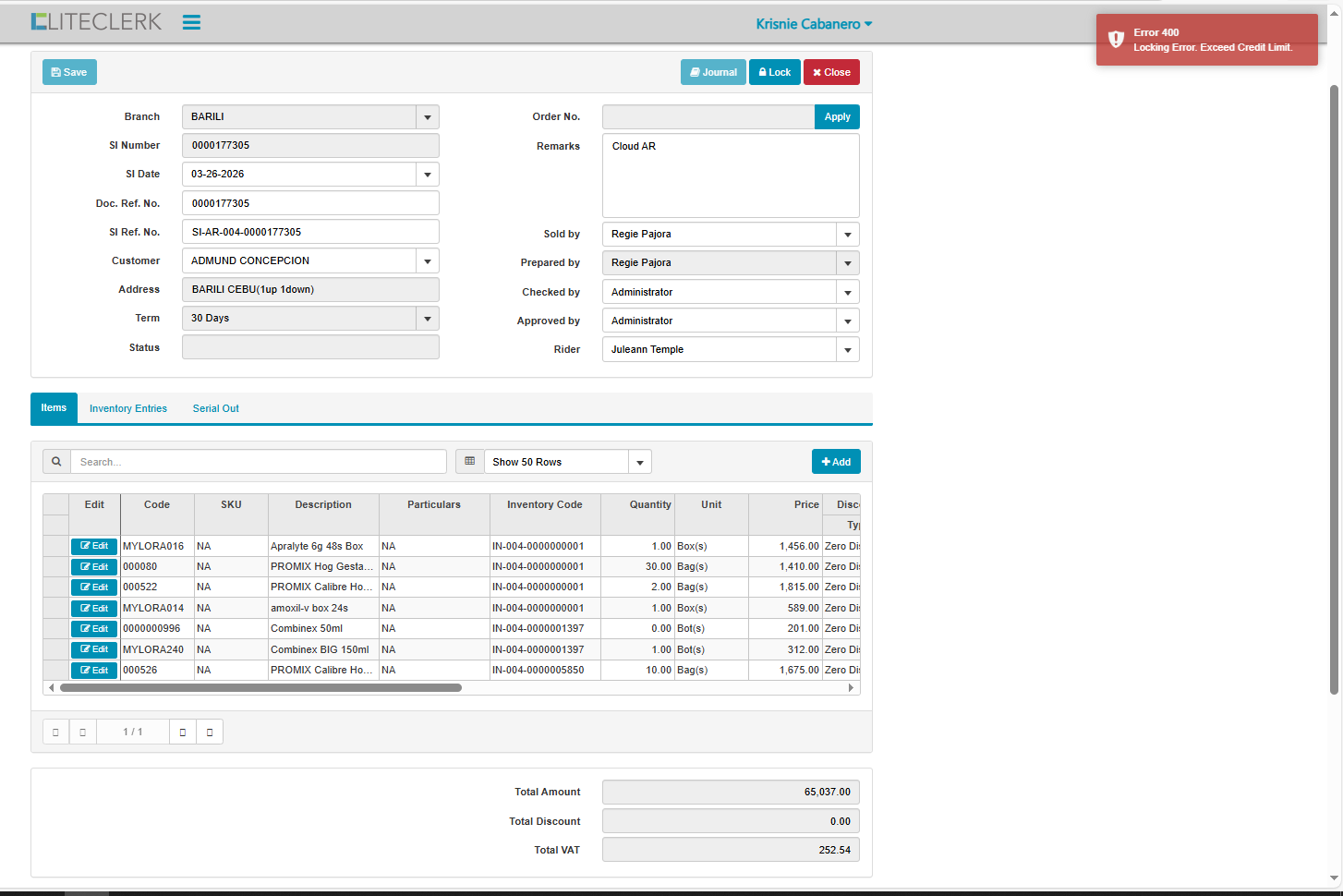 openexceed credit limit customer but in record not yet na exceed (CLOUD)