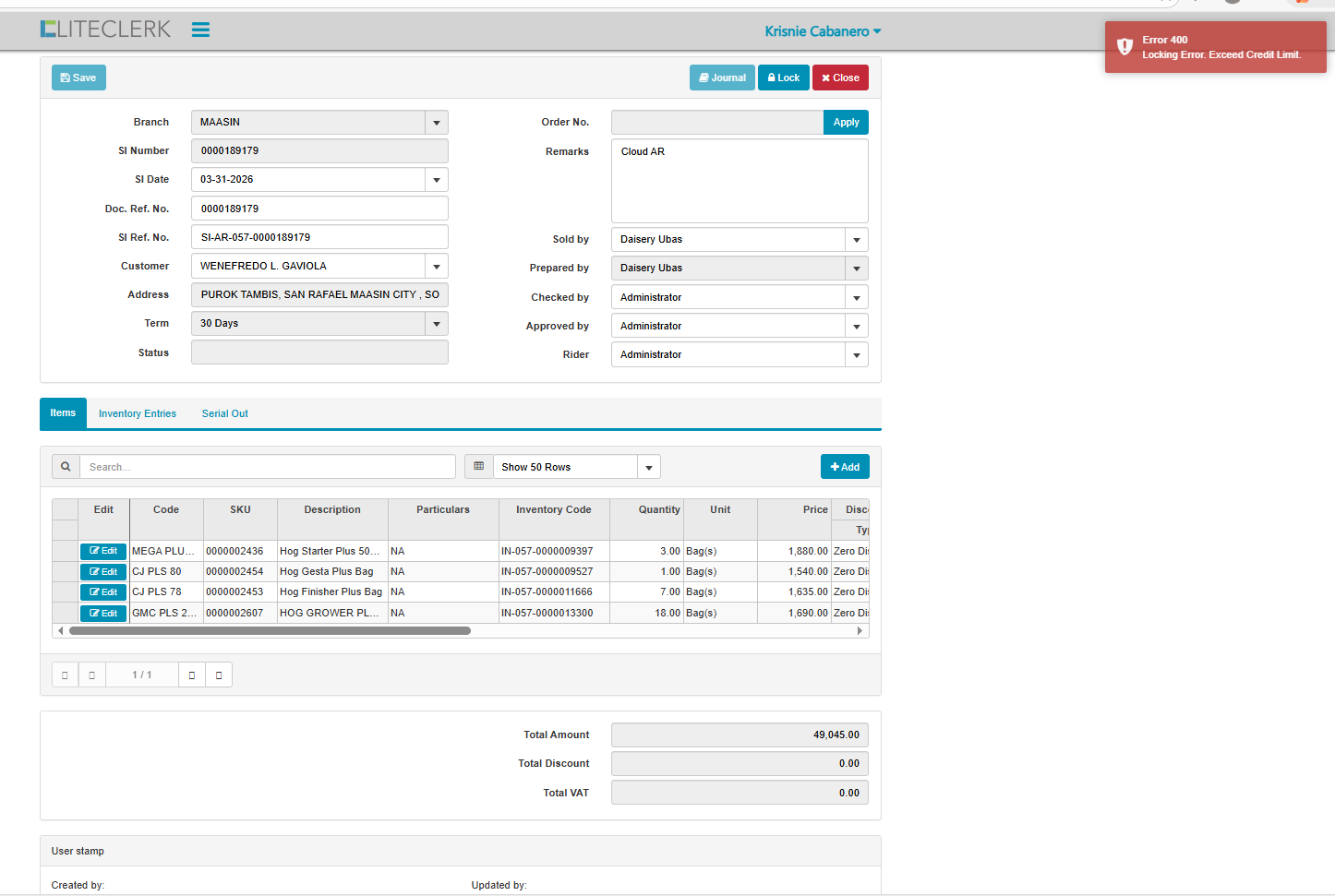 openexceed credit limit customer but in record not yet na exceed (CLOUD)