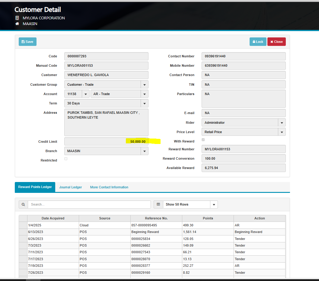 Customer: Wenefredo L. Gaviola