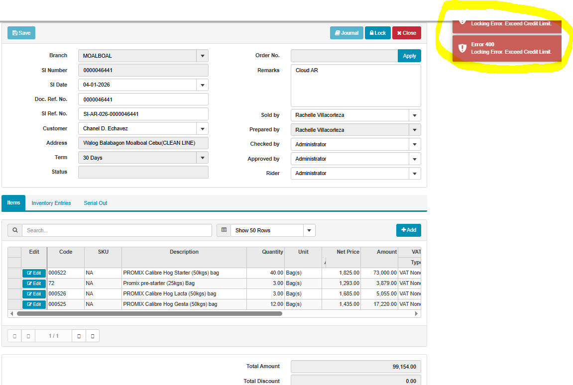 openexceed credit limit customer but in record not yet na exceed (CLOUD)