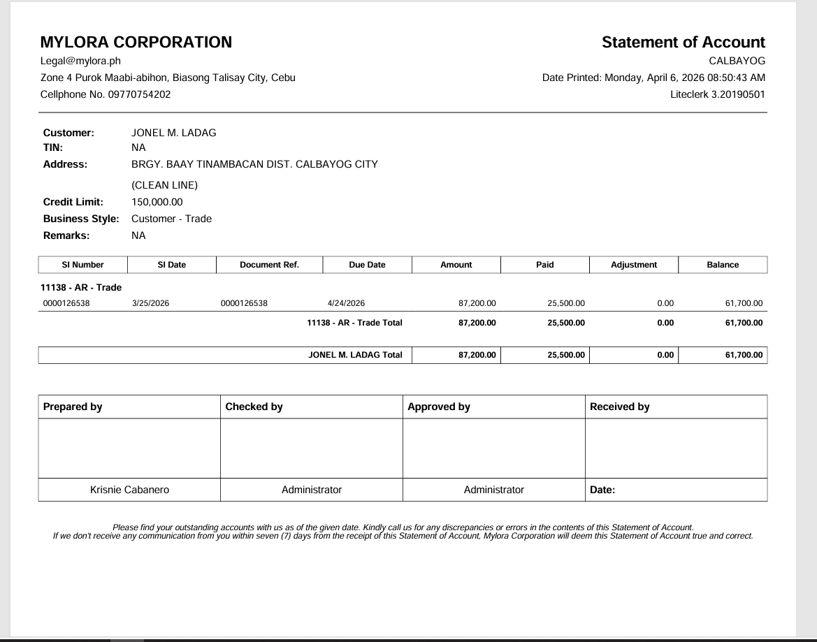 Customer: Jonel M. Ladag