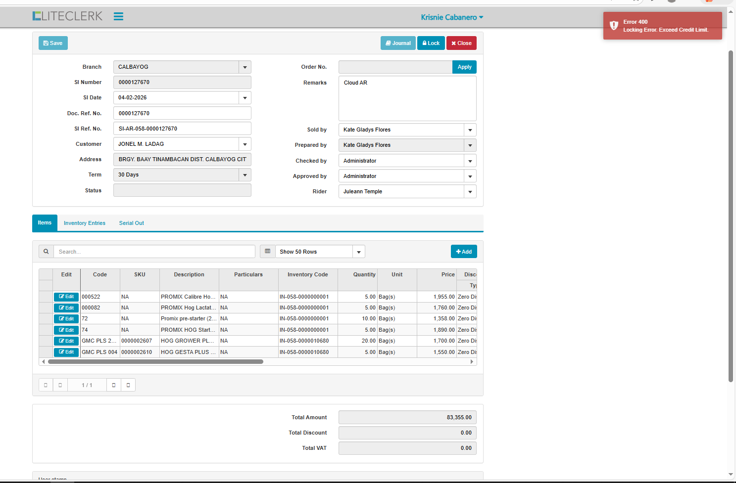 openexceed credit limit customer but in record not yet na exceed (CLOUD)