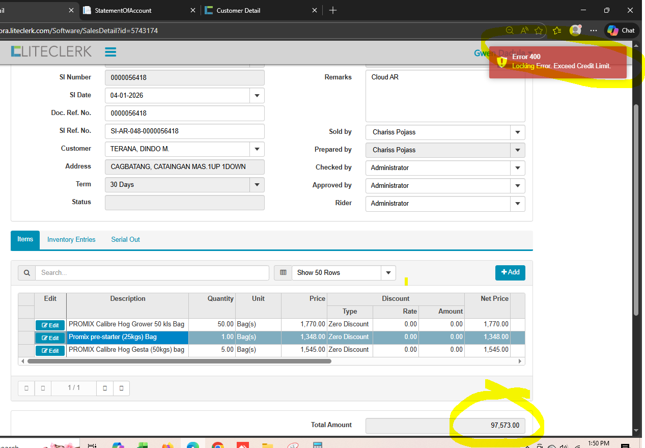 openexceed credit limit customer but in record not yet na exceed (CLOUD)