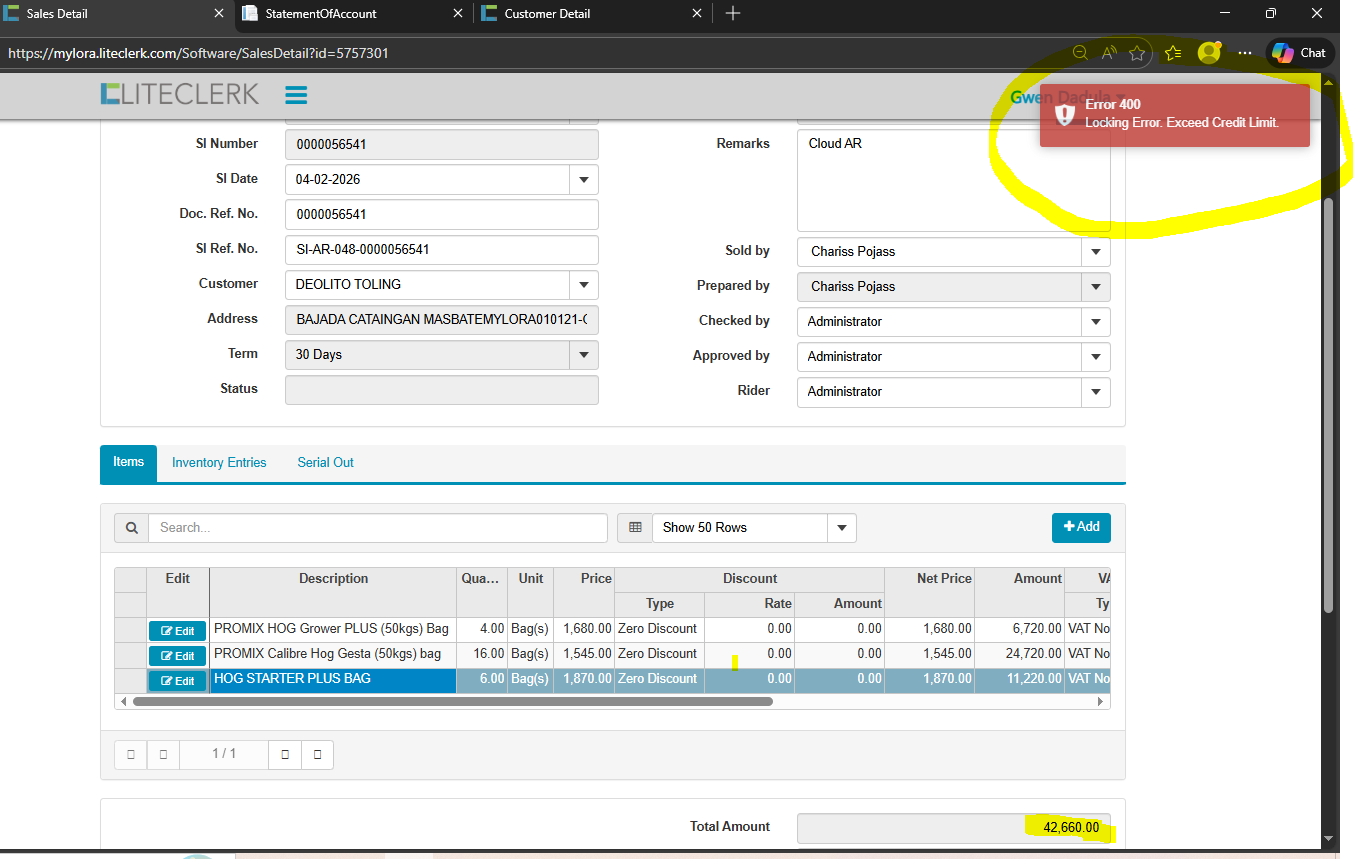 openexceed credit limit customer but in record not yet na exceed (CLOUD)