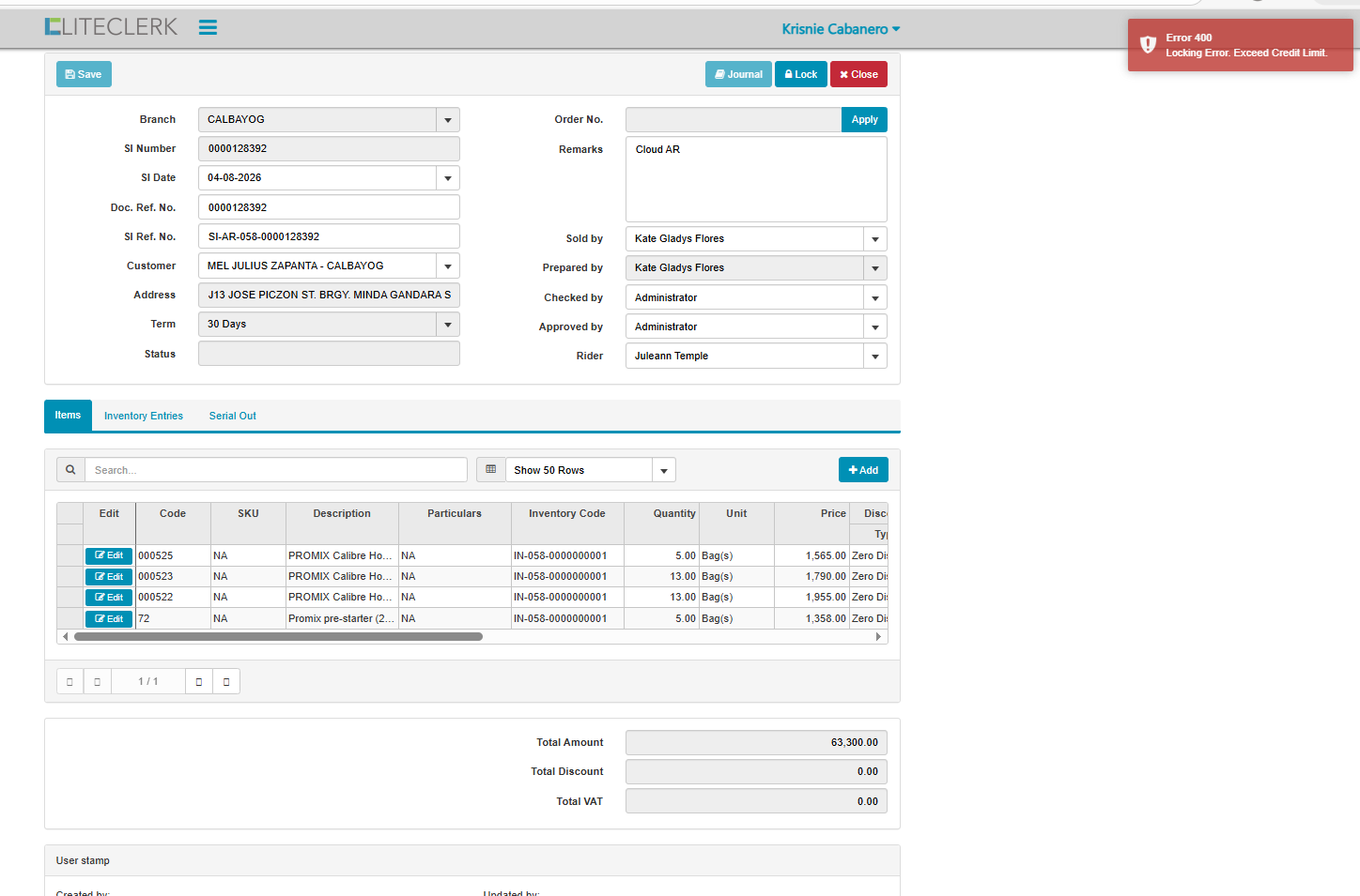 exceed credit limit customer but in record not yet na exceed (CLOUD)