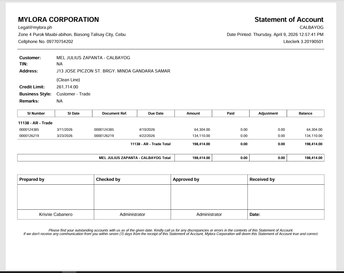 Customer: Mel Julius Zapanta