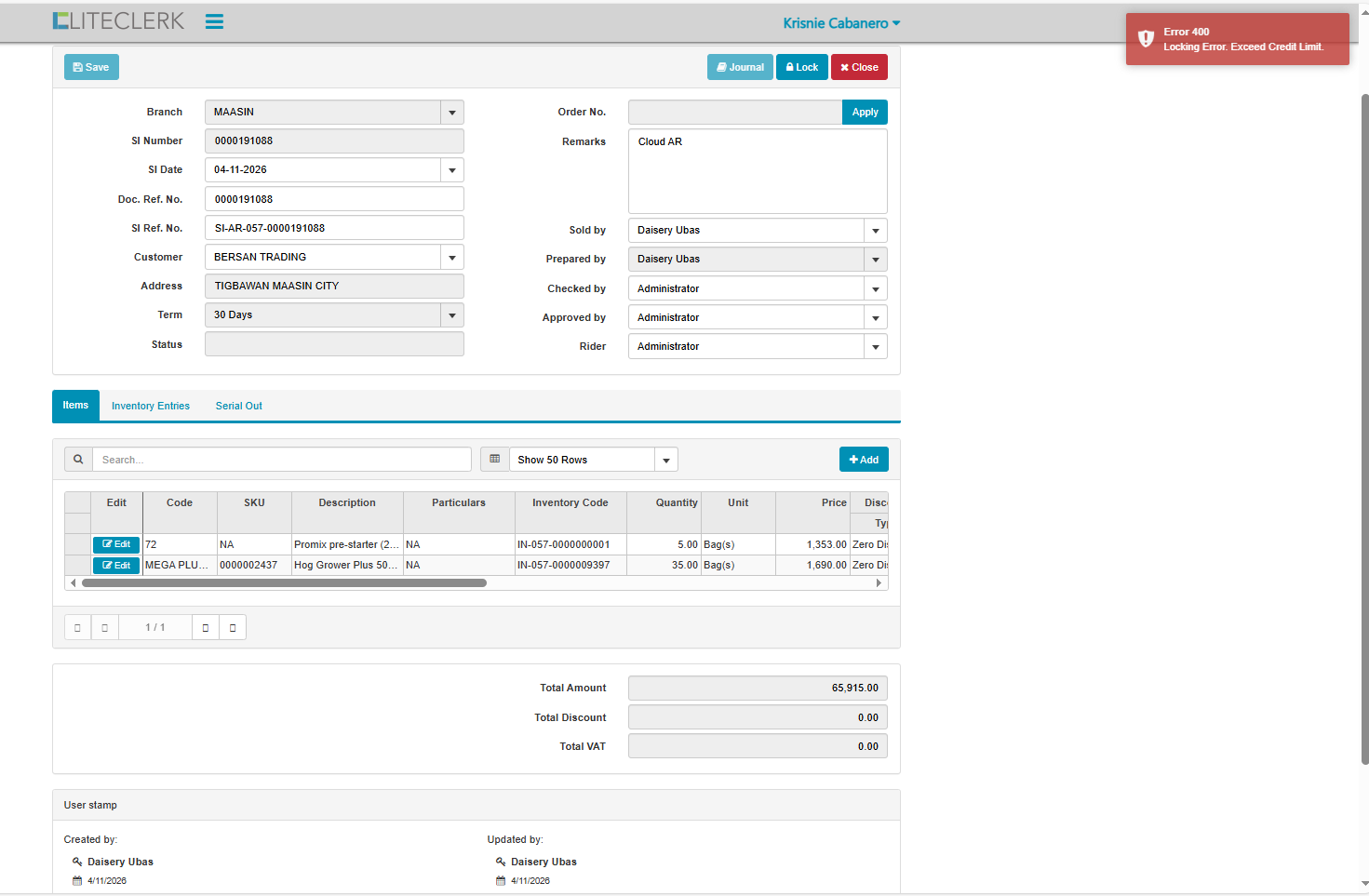 openexceed credit limit customer but in record not yet na exceed (CLOUD)