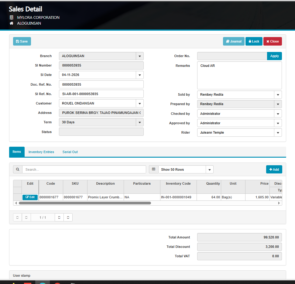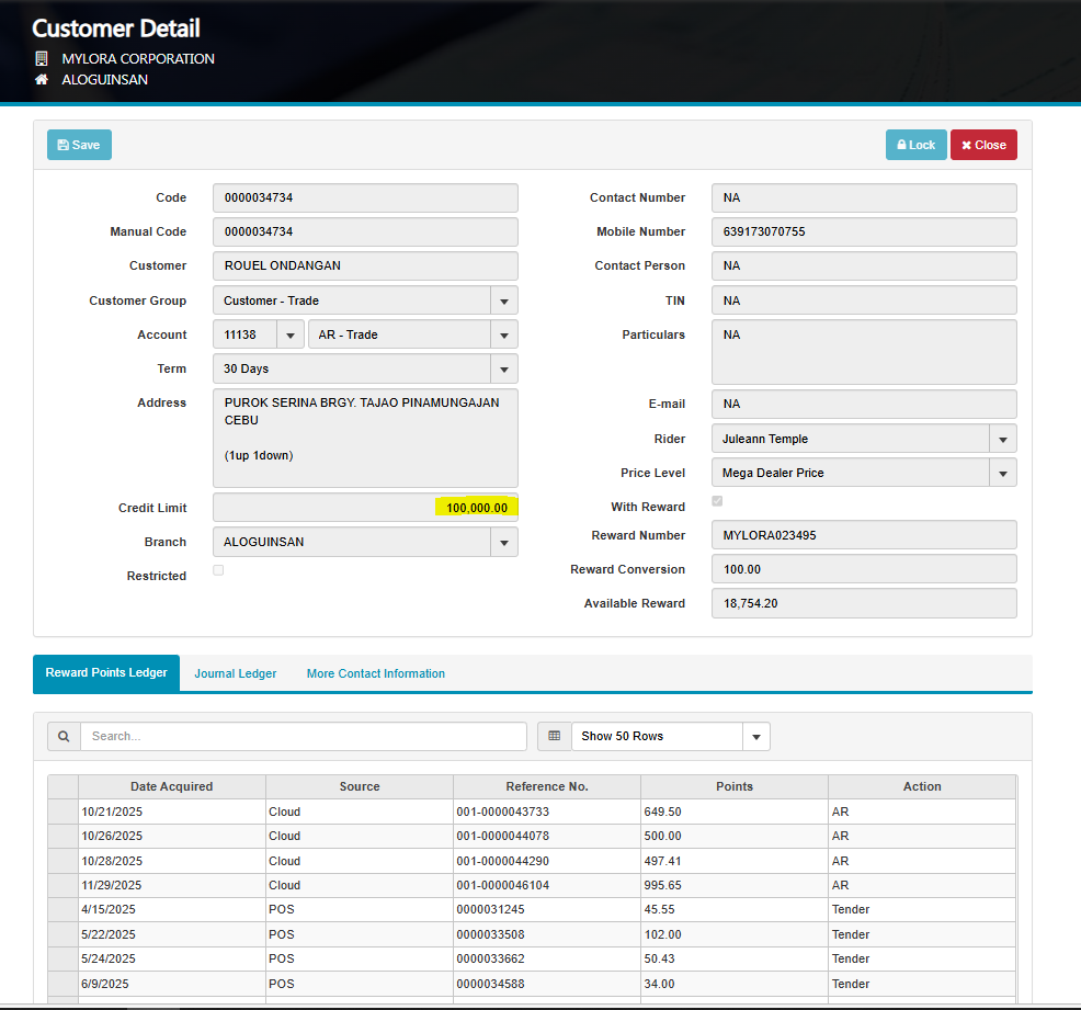 Customer: Rouel Ondangan