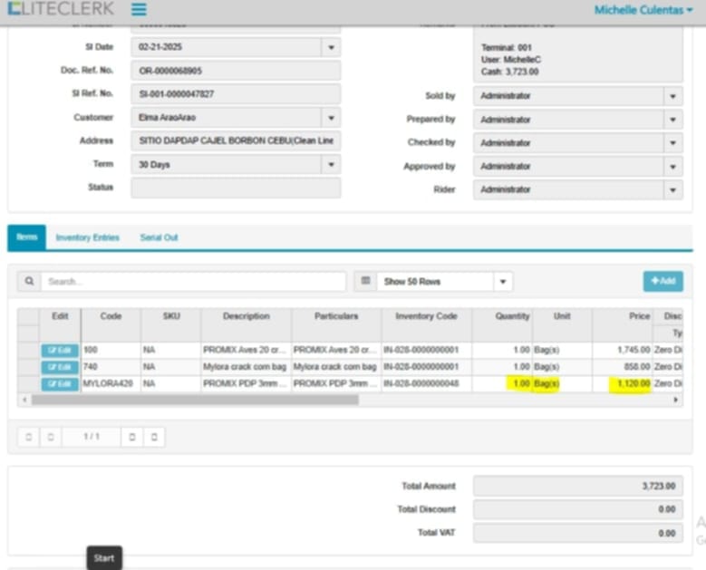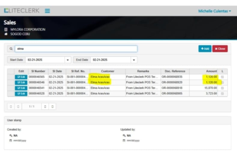 Naay usa ka elma arao arao S.I no.0000046546 nga zero ang amount sa pos(naka lock) pero sa cloud ni gawas as halin .